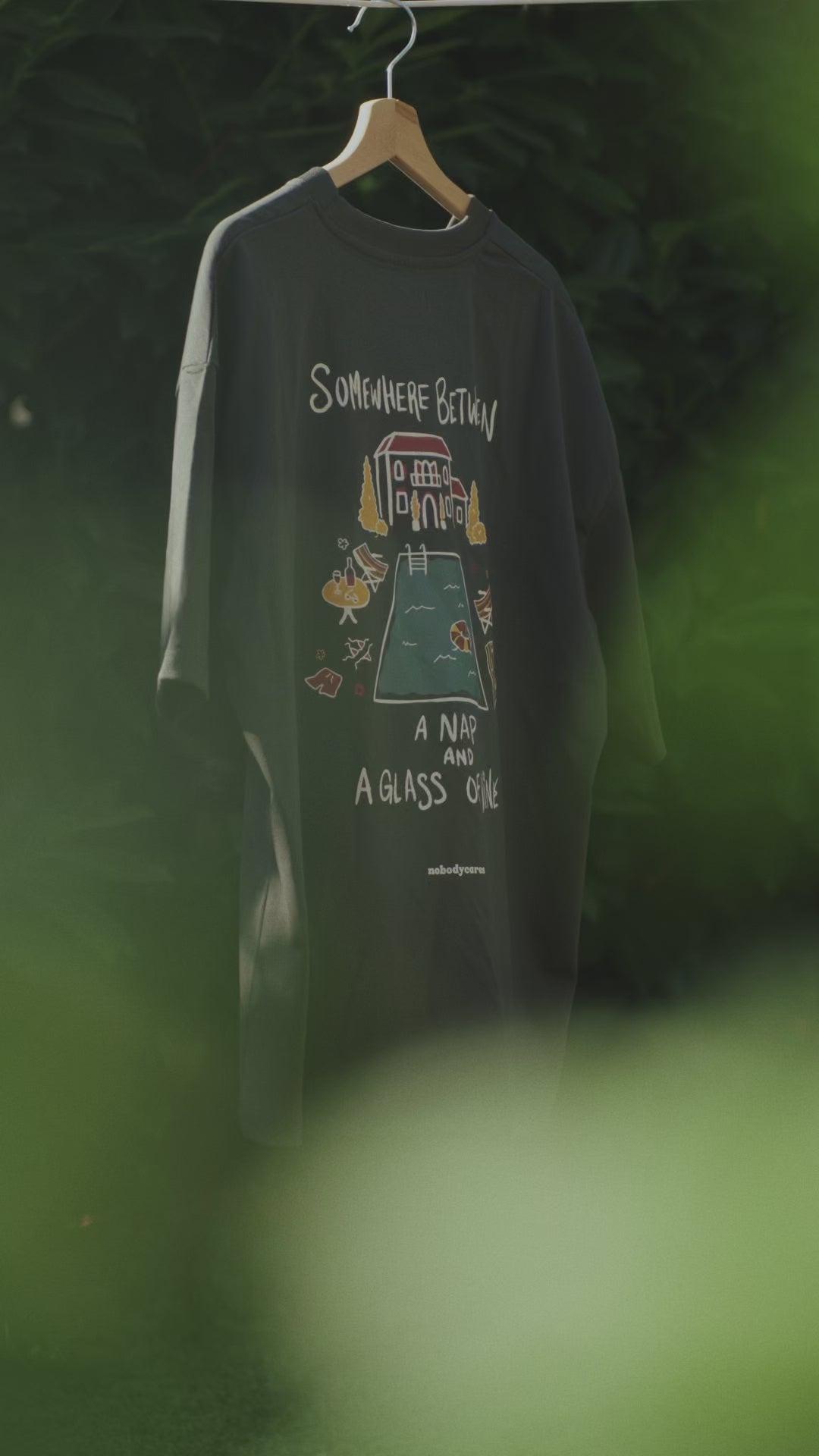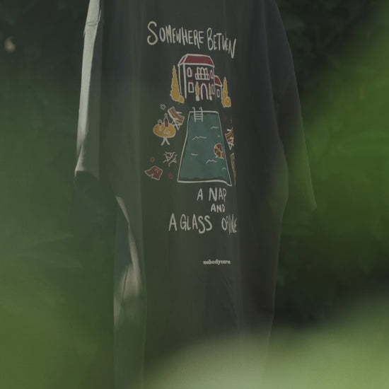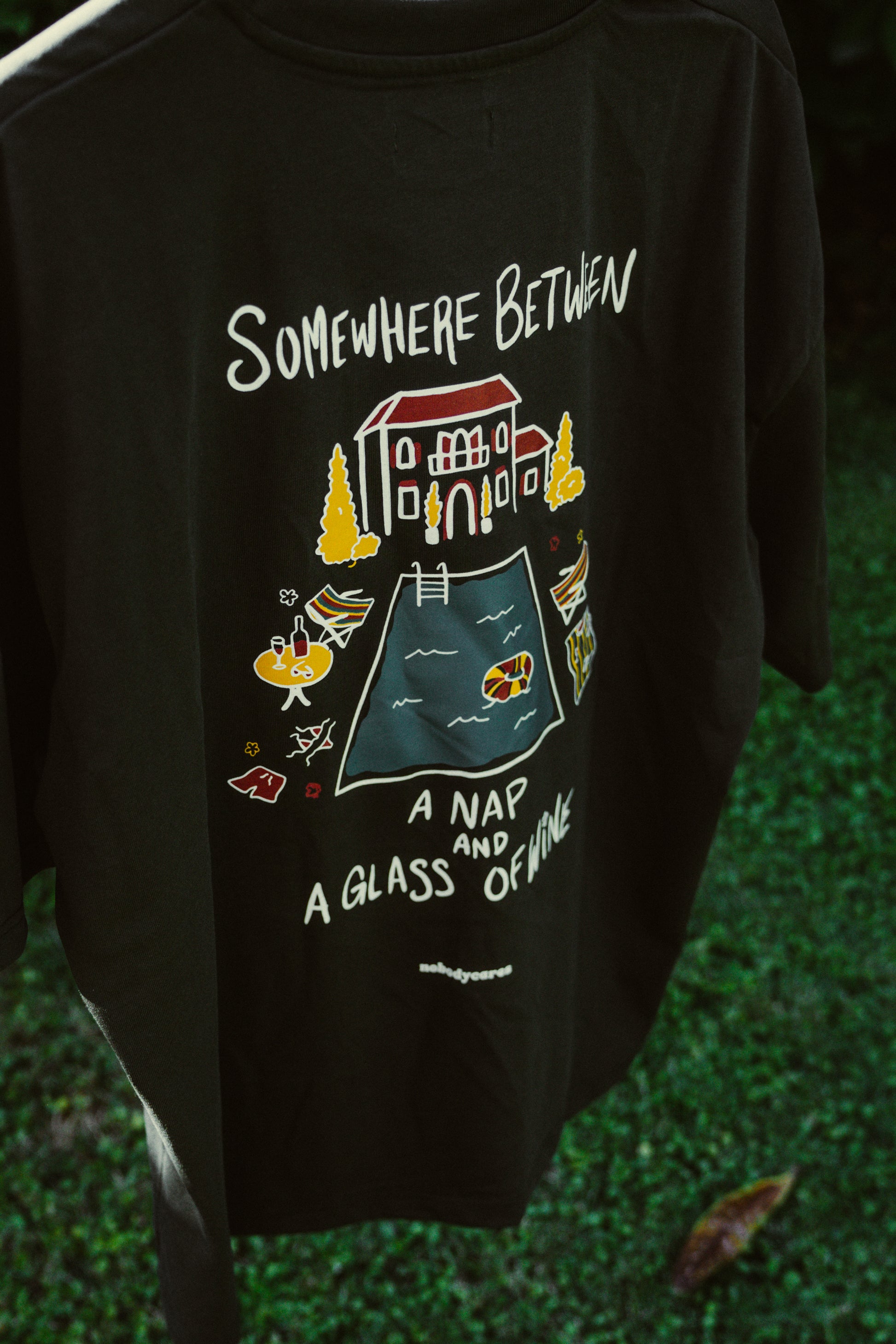 Retro: scritta "Somewhere beetwen a nap and a glass of wine" + elementi simbolici